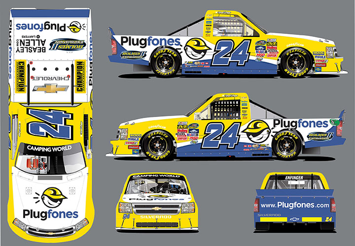 The NASCAR Camping World Truck Series returns to action next Saturday, October 22, at Talladega Speedway. Enfinger and his No. 24 Plugfones Chevrolet team will take the green flag shortly after 12:00 PM CDT. FOX will carry the live television broadcast, while the Motor Racing Network (MRN) will have live radio coverage.